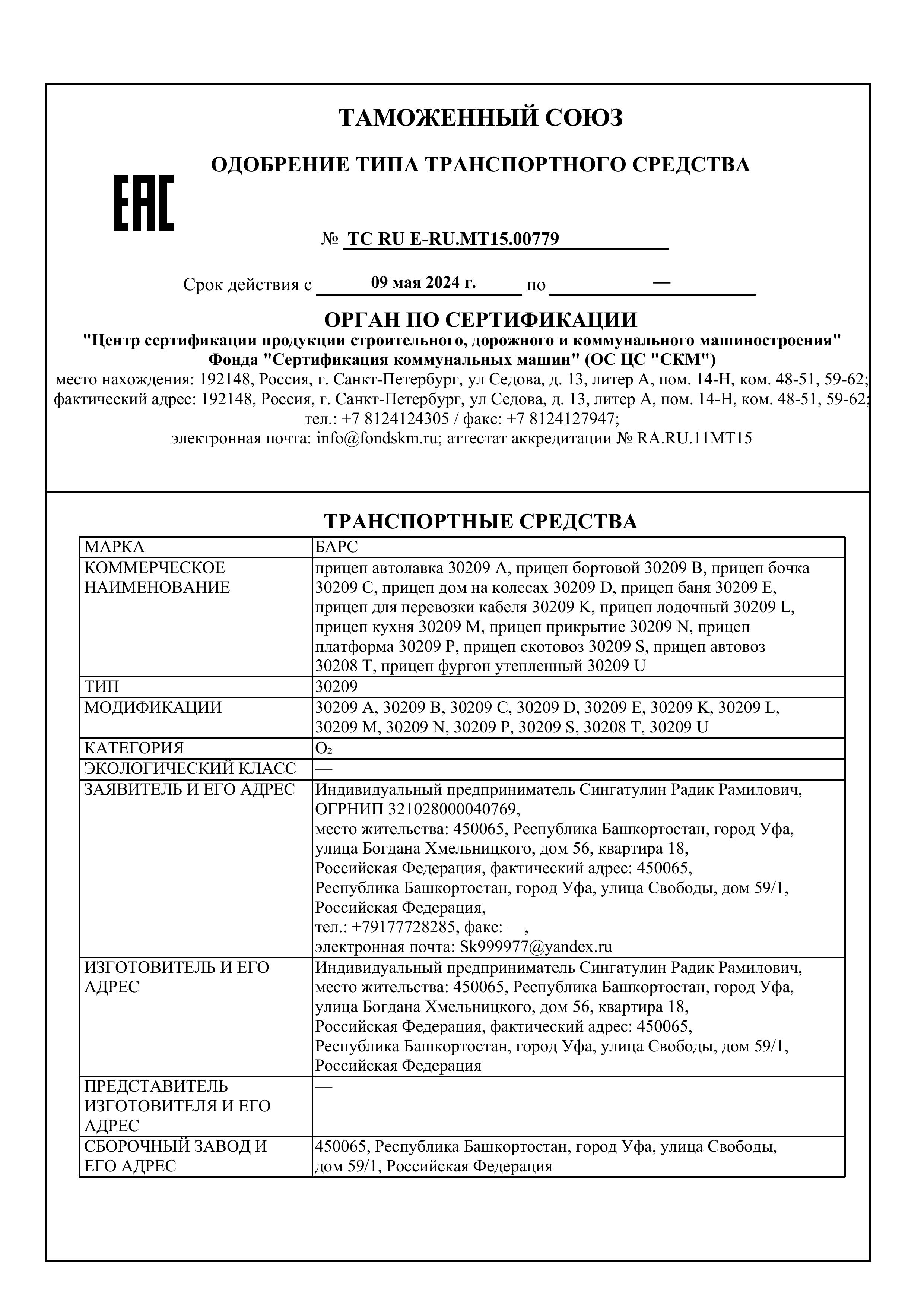 ОПИСАНИЕ ПРИЦЕПА
