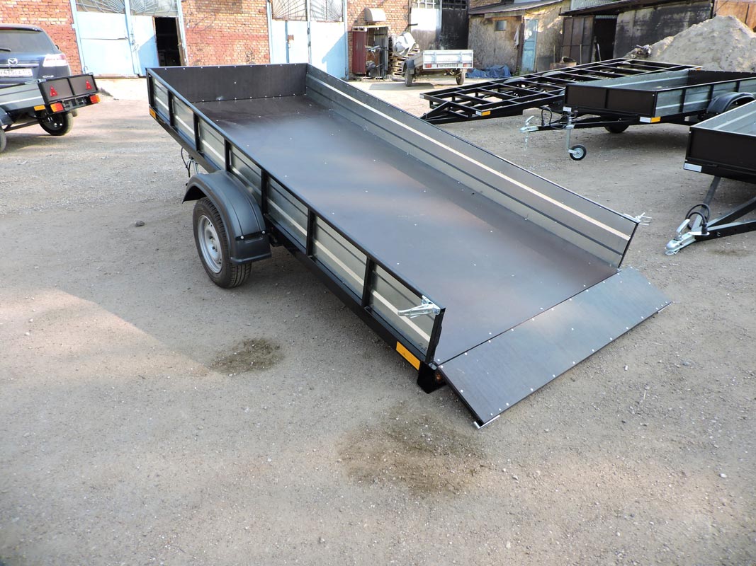 Цельнометаллический кузов прицепа ограждает груз от неблагоприятных погодных условий и ударов. Плотные стенки конструкции предохраняют от потери содержимого во время дороги. Откидные и съемные борта сделаны из фанеры, оцинкованной сталью и оборудованы для удобства тросиками.