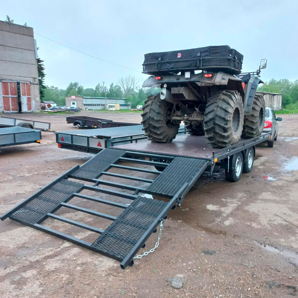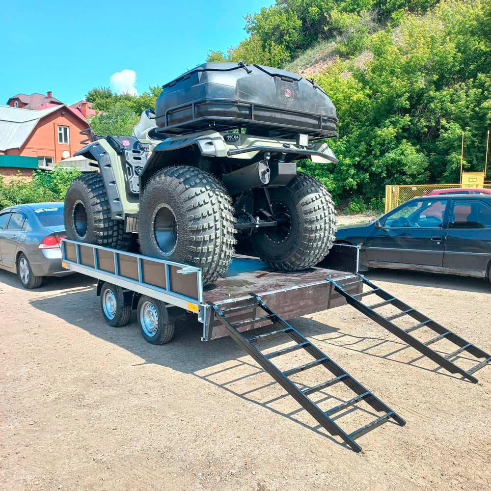 Прицепы с трапами традиционно используют для удобной транспортировки квадроциклов, снегоходов и другой мототехники.